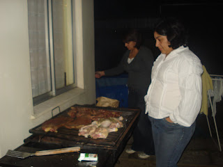Esta fotopostal resume lo lindo que fue la reunión. Comienza la preparación de las carnecitas, Polita tomó el mando.